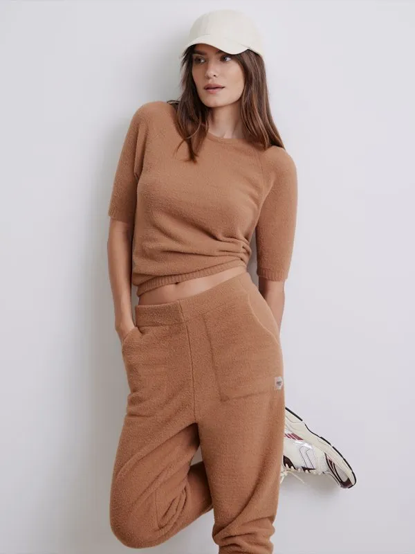 Blusa feminina manga curta confeccionada em fio pluma, possui decote redondo e cava raglã.