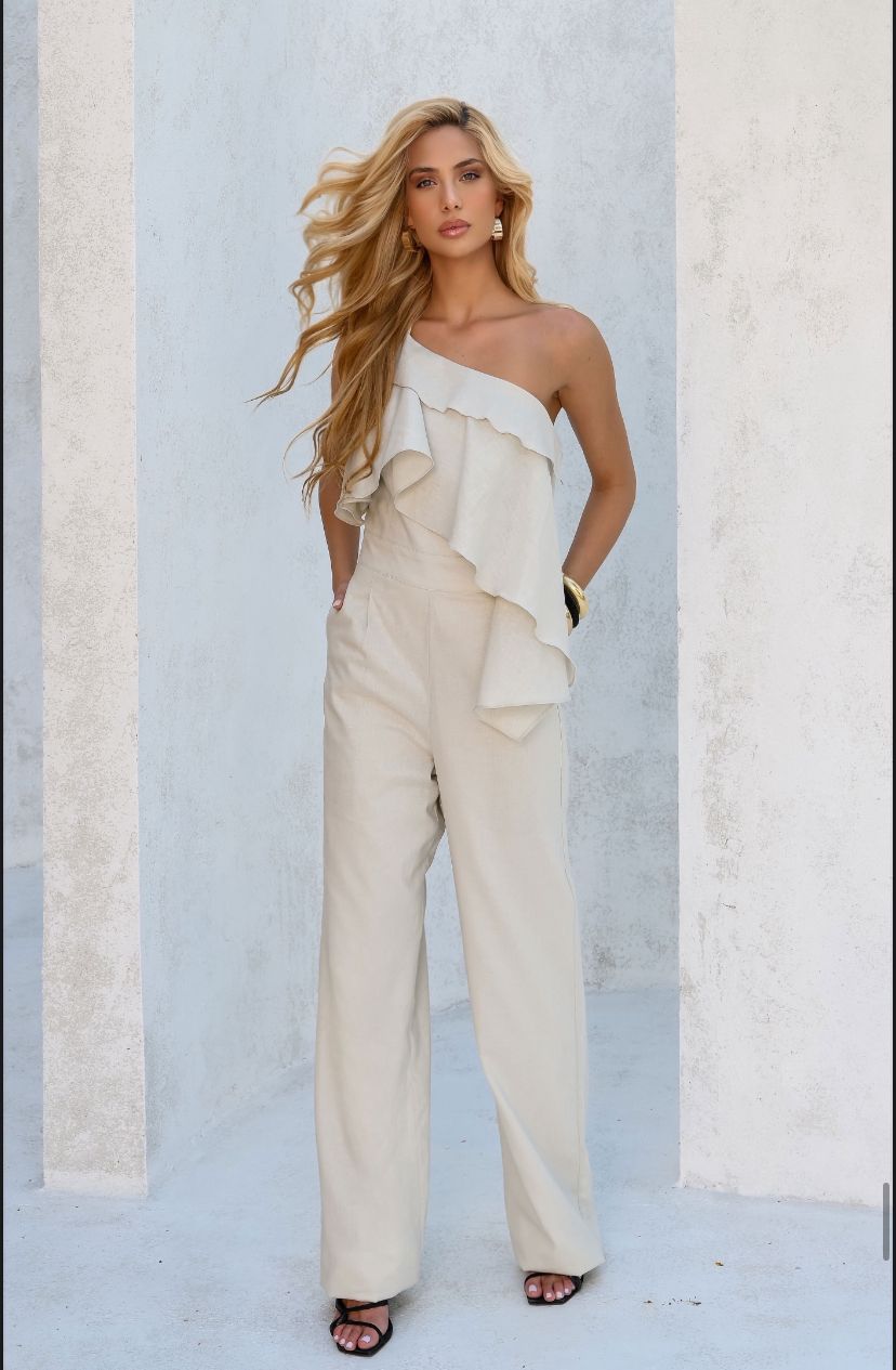 Jumpsuit confeccionado em cambraia de linho, trazendo leveza, sofisticação natural e caimento